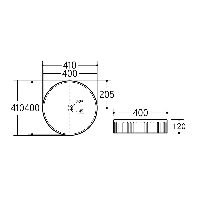 Bellevue Flute Round Art Basin Gloss White 410x410x120mm