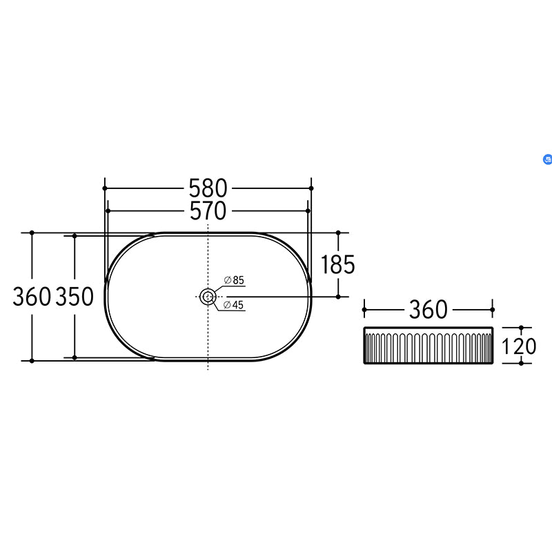 Bellevue Flute Oval Art Basin Gloss White 580x360x120mm