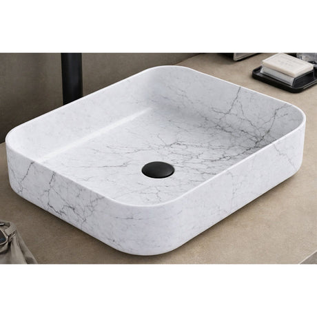 $385.00$254.00Unit price /UnavailableIn stockAbove Counter Basin Rectangular Matte White Carrara With Gold Vein 500x390x130mm