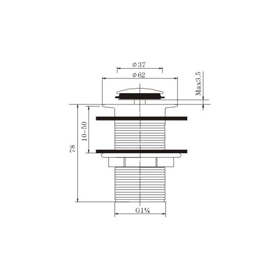 32/40mm Solid Brass Basin Pop Up Waste with NO Overflow Black