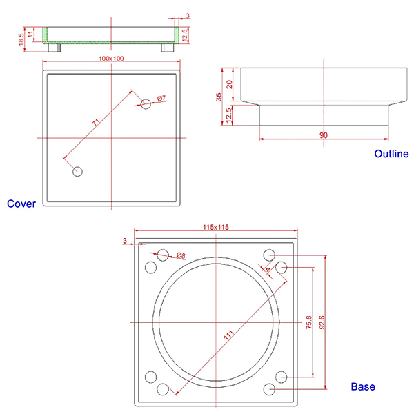 - Dimensions: 115mm x 115mm x 20mm