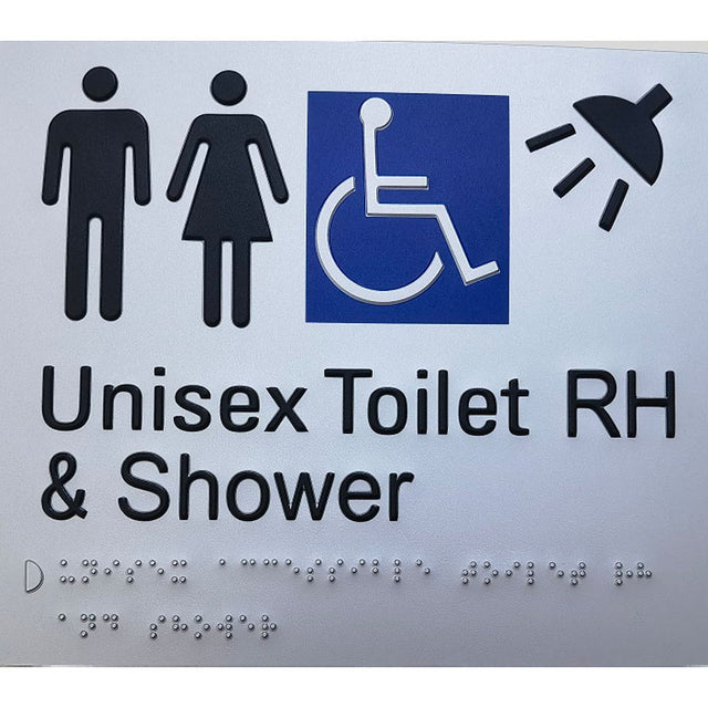 RH Unisex Toilet and Shower Sign is backordered and will ship as soon as it is back in stock.