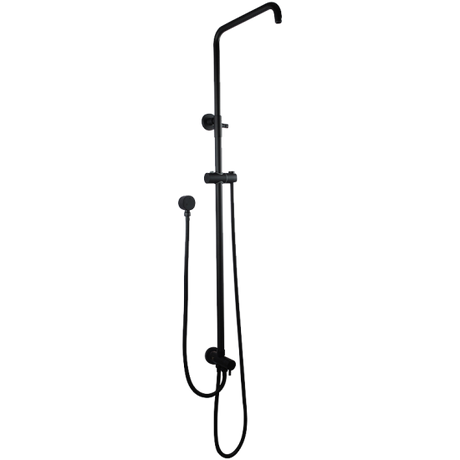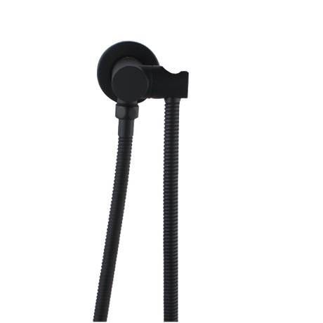 Round Adjustable Shower Rail with Wall Connector & Water Hose Only Black