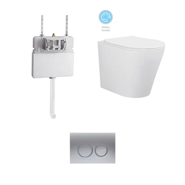 BRAVO Rimless In Wall Cistern Toilet Suite Chrome Round Button
