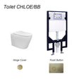 CHLOE Rimless In Wall Cistern Toilet Suite Wall Hung Pan R&T Cistern Brushed Brass Round Button