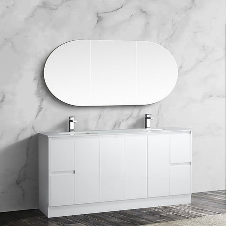 Sierra Series Matt White Overall 730X355X855mm VANITY SET With Ceramic Slimline Top (UV32) Left