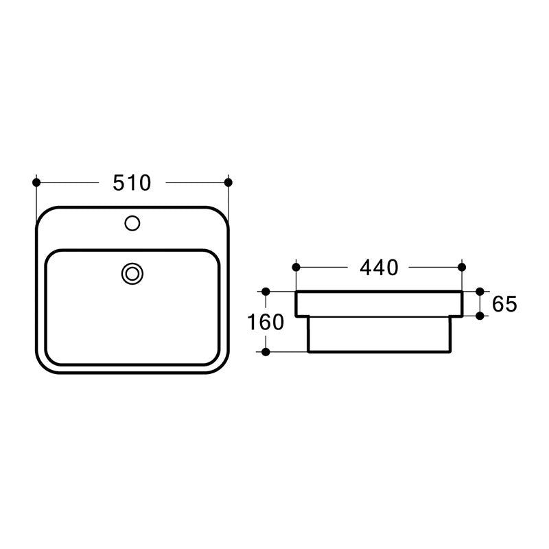 COCO Half Insert Basin Gloss White 510x440x160mm