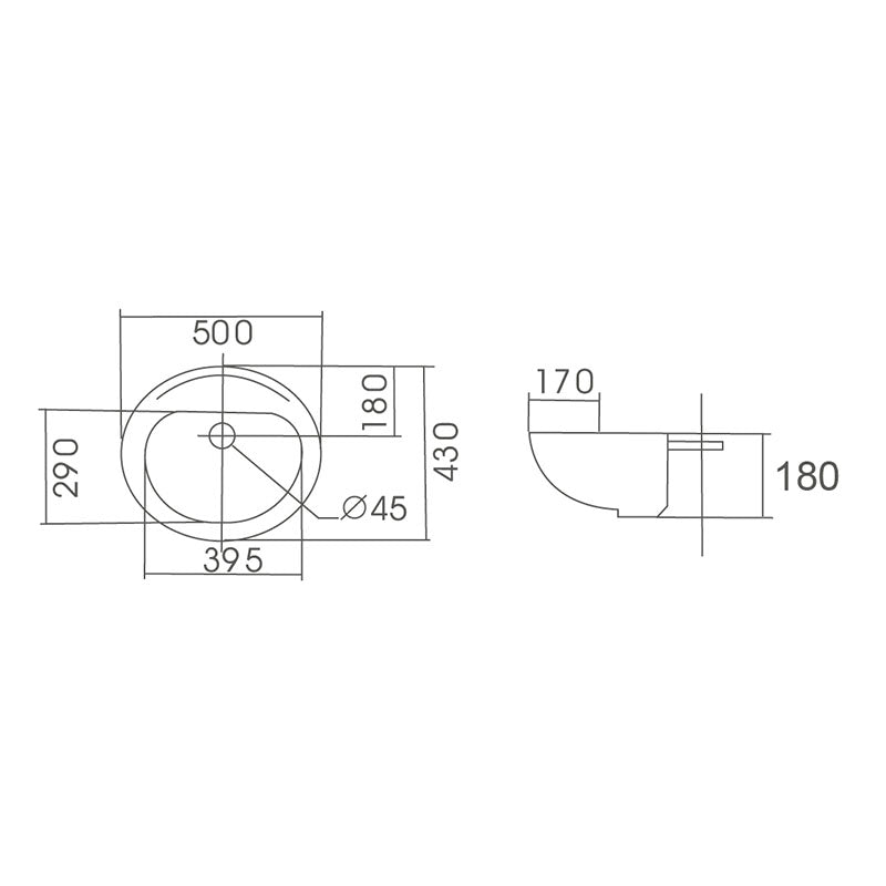 COMO Semi Recess Basin Gloss White 500x430x180mm