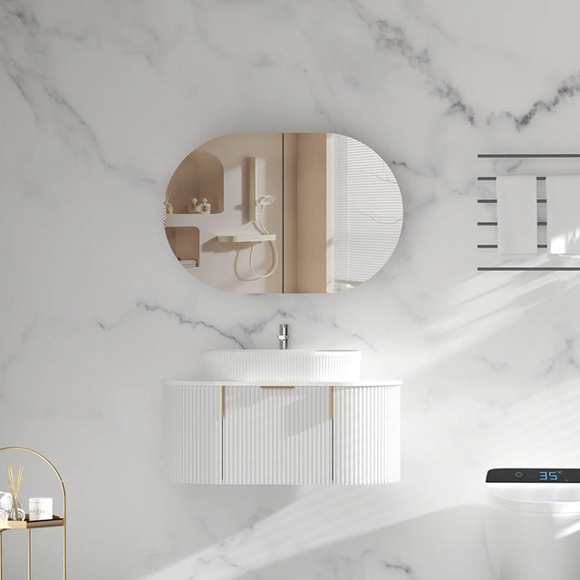 Carysil Mystic Oval Shaving Cabinet Matte White 900x600mm