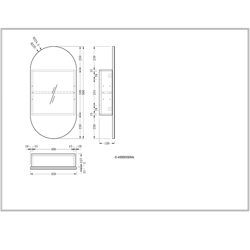 Carysil Noble Oval Shaving Cabinet Walnut 450x900mm