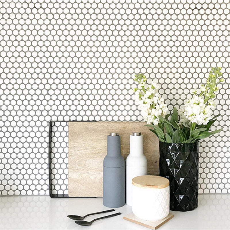 PENNY ROUND GLOSS WHITE 19MM ON 310X315X6MM SHEET