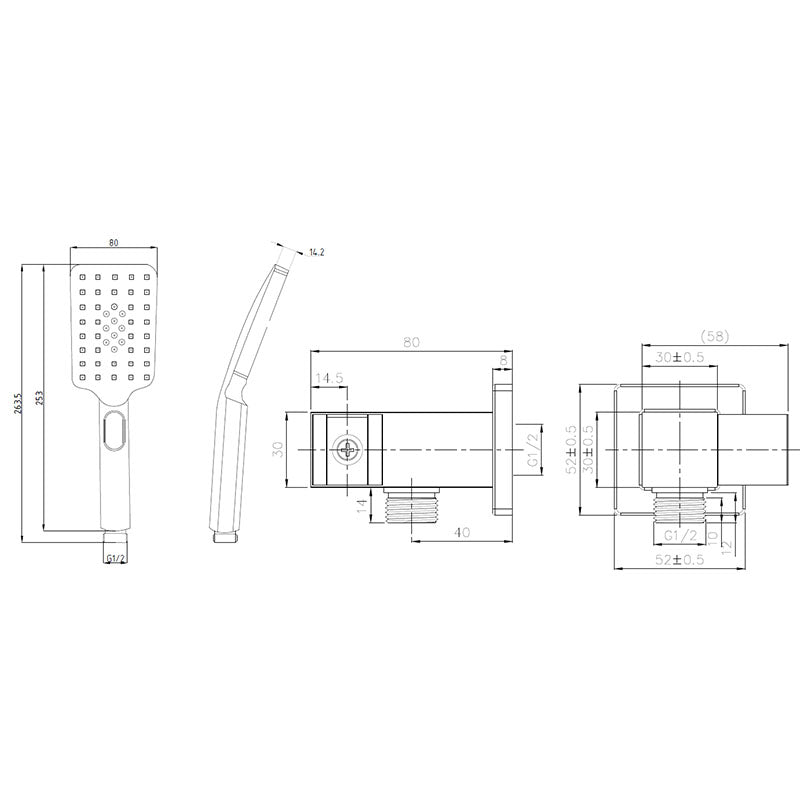 3 Function Shower Head On Bracket (Elbow Built In) with 1.5m Hose