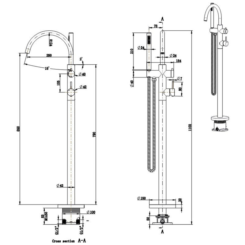 JESS Free Standing Bath Mixer in Matte Black is backordered and will ship as soon as it is back in stock.