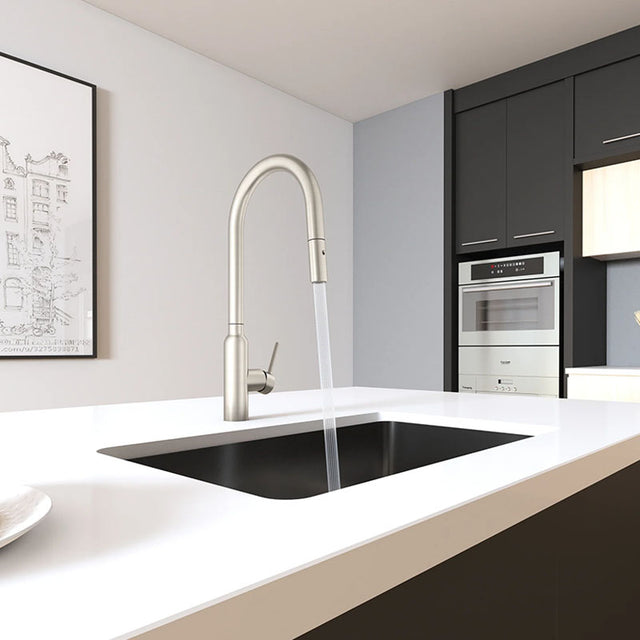 Navona Carysil Round Pull out Kitchen Mixer Brushed Nickel
