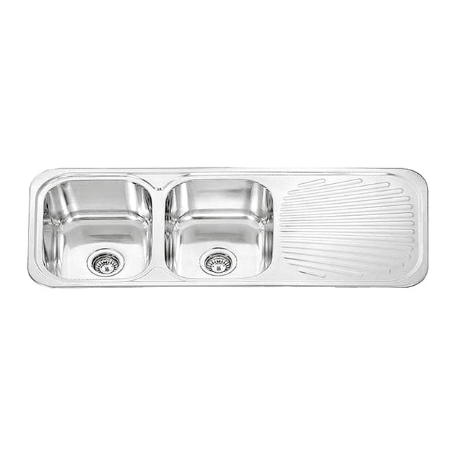 DANTE Double Bowl (2x20L) Sink with Drainer - Waste Included (LHB or RHB) 1180x480x180mm