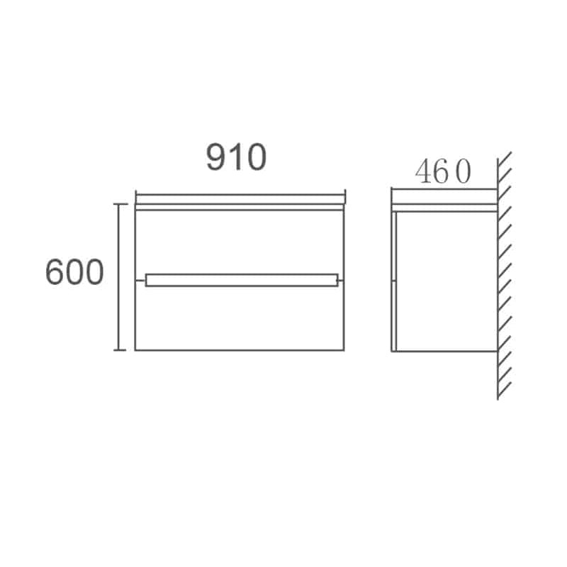 BELLA Wall Hung Vanity Ceramic Top 1 Tap Hole 2 Soft Closing Drawers White Gloss Finish 890x455x600mm