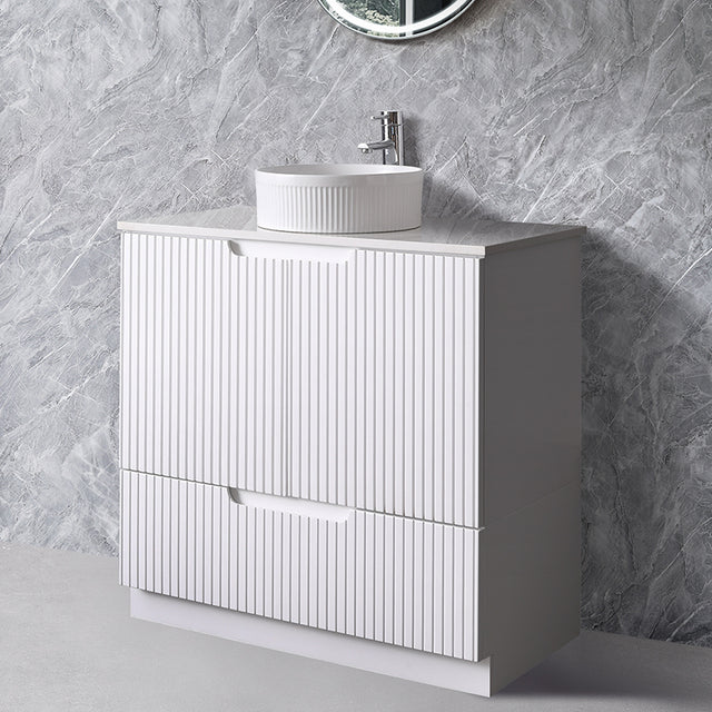 Duplex Collection Series Floorstanding Double Bowl Matt White 1480x455x855mm Vanity with Flat Stone Top