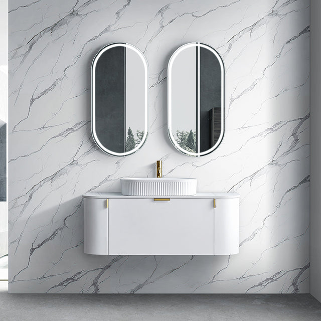 Plateau Series Wall Hung Matt White 1180x455x420mm Vanity with Stone Top & Ceramic Undermount Basin