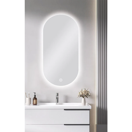 Pill Shape Framed Carysil LED Mirror Brushed Nickel 450x900mm