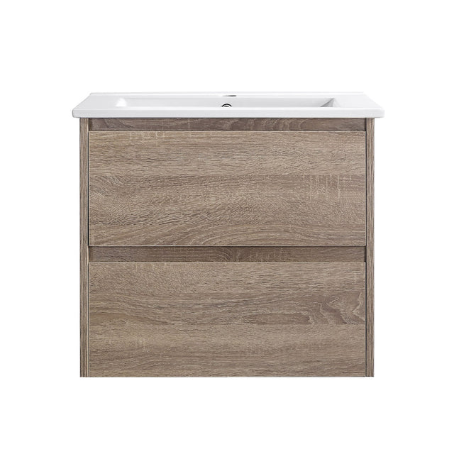 Oakdra Wall Hung Prime Oak Vanity Set 600mm Undermount Stone Top Single Bowl