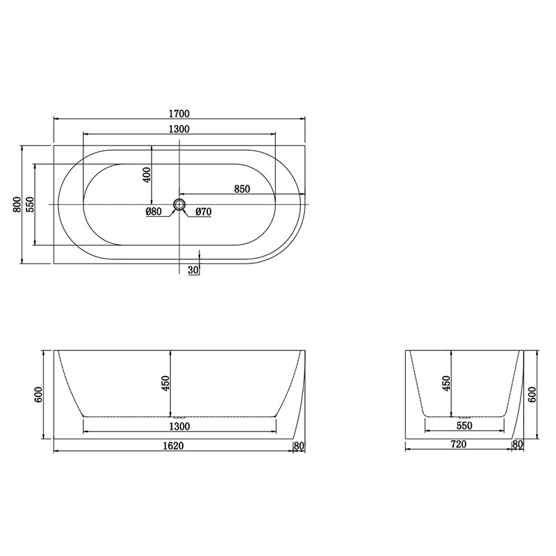 1700x800x600mm Bathtub Left Corner Acrylic GLOSSY White Bathtub NO Overflow