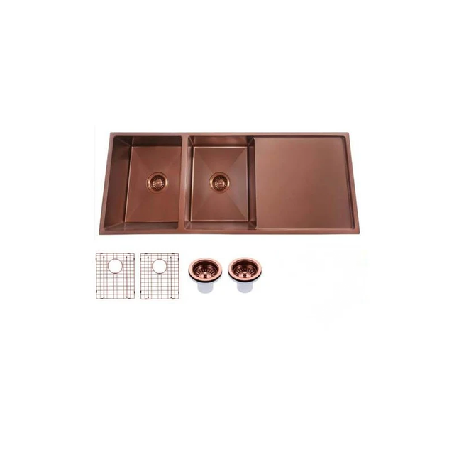 304 Stainless Steel PVD Coating Double Bowl Kitchen Sink(Round Edges) (with Drainer) Rose Gold 1160x460x230mm