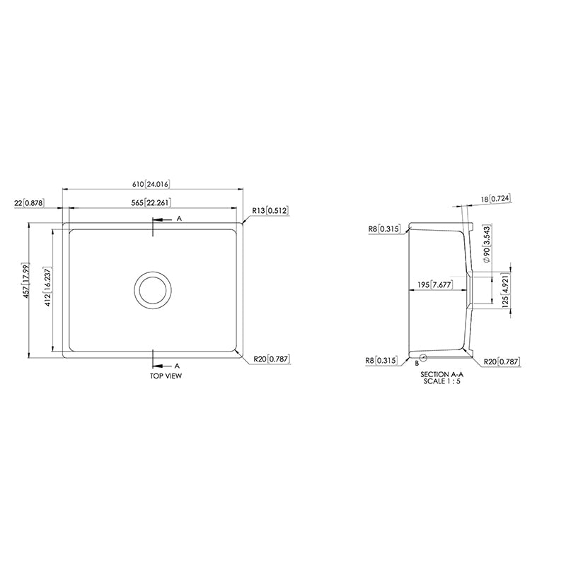 Carysil Fine Fireclay Single Bowl 610x457mm
