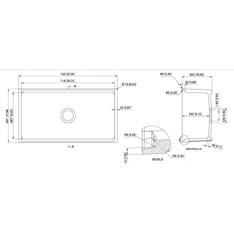 Carysil Fine Fireclay Single Bowl 762x457x254mm