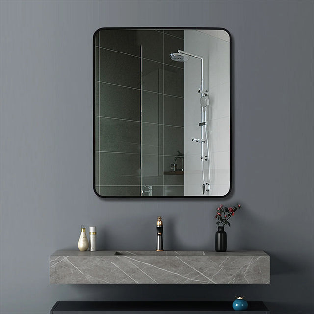 Black Frame Mirror is designed with style to suit your bathroom vanity. Aside from making spaces appear larger, wall mirrors offer a tactful, stylish way to hide imperfections, maximize light, and provide a second look at your favorite accents. It can be hung vertically in a bedroom, bathroom, and beyond.